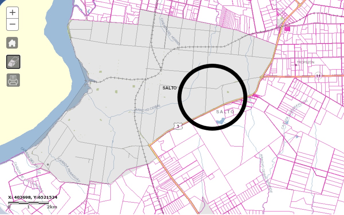 SALTO / VENTA EN EXCLUSIVIDAD / 40% DEL PADRÓN DE 4 HECTÁREAS / ZONA ESTADIO Juan José VISPO MARI, A LA ENTRADA Y SALIDA DE LA CIUDAD / FRENTE AL NORTE A AVENIDA Manuel ORIBE - COMO REFERENCIA DE LOCALIZACIÓN A POCOS METROS, NUEVA ESTACIÓN DE SERVICIO, REDPAGOS, SUPERMERCADOS, FERRETERÍAS, EMPRESAS AGROPECUARIAS, ETC.